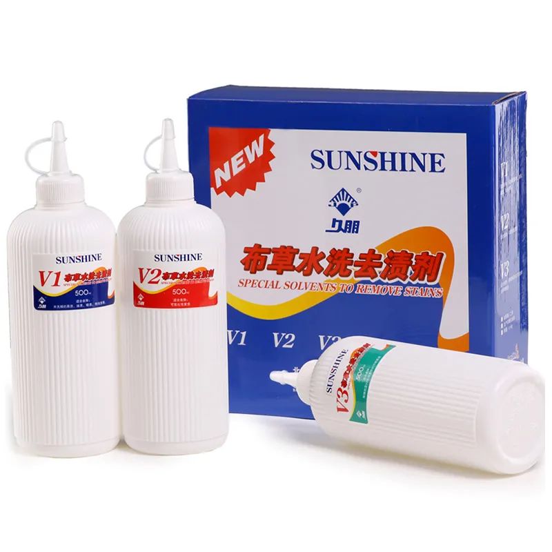 如果该类污渍数量较多,可以采用整机洗涤的方式,在使用常规洗涤剂的基础上额外添加“日光久朋去油去污皂化液”,该产品在洗涤液中会产生黏性颗粒,增大织物纤维间的微摩擦力,渗入纤维孔径将固体颗粒污垢包裹粘附脱离织物,达到彻底去除该类污渍的目的,针对布草拖地痕污渍、酒店厨衣、医护人员白大衣领口、袖口污渍等洗涤效果显著。